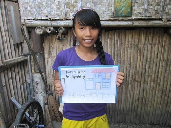 家族に家を建ててあげたい。大きな家を。もう1つは、本当は芸術・絵を描くことの道に進みたいのだけれど、行けないの。でも全然大丈夫!今が幸せだから。学 校に通えるだけでいっぱい学べることがたくさんある!今は、ITコースに通ってるから、そこでプロフェッショナルになりたいと思ってます。でも、チャンス があれば精一杯努力して将来的には建築士になりたいな。