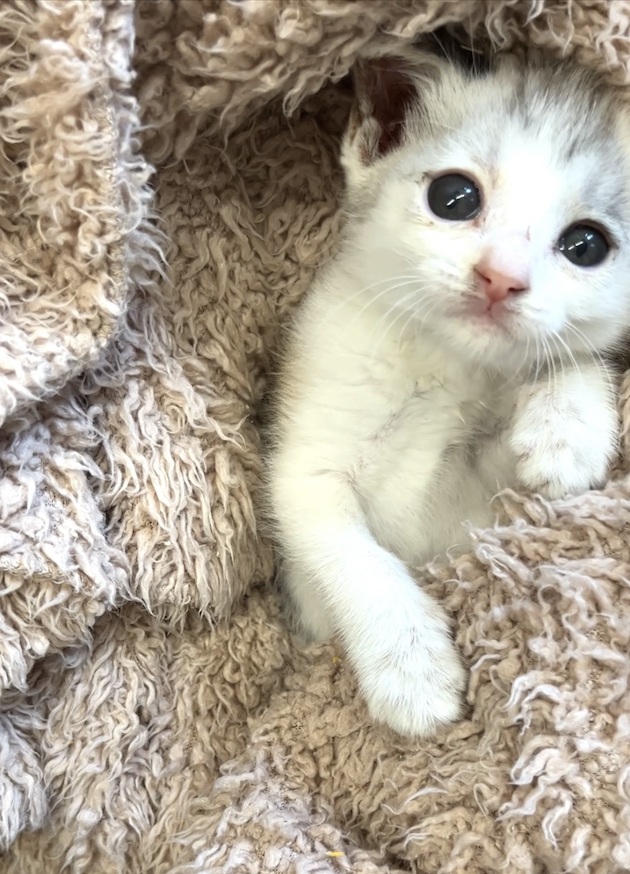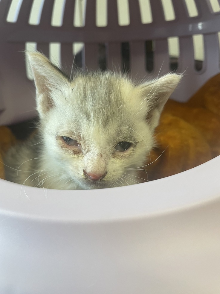 全身、ノミだらけで保護された生後2週間ほどのちびっ子。