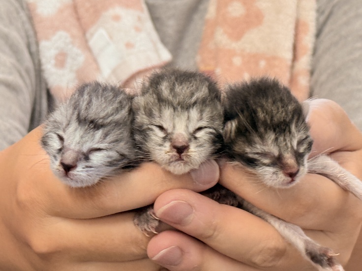 本日、郡山市保健所から臍の緒がついた生後間もない子猫が3匹やって来ました。