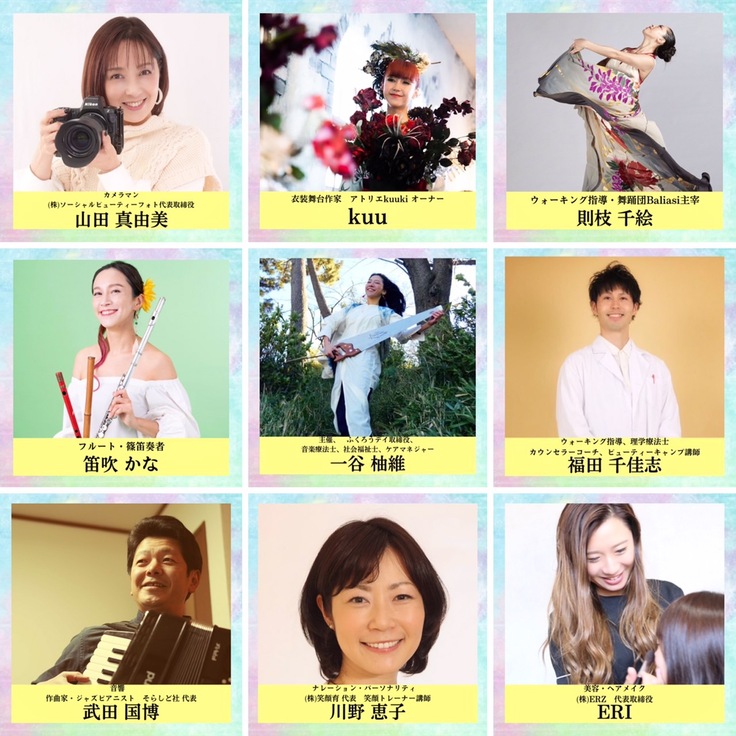 - ヘアメイク、演奏家、舞踊家、舞台監督、照明、カメラマン、ナレーションまで、表現のプロチームが全力バックアップ!