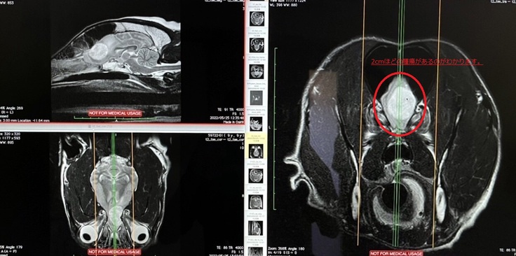 総合病院でMRIをして頂いたところ、みるくの脳に2センチぐらいの腫瘍があることがわかりました。