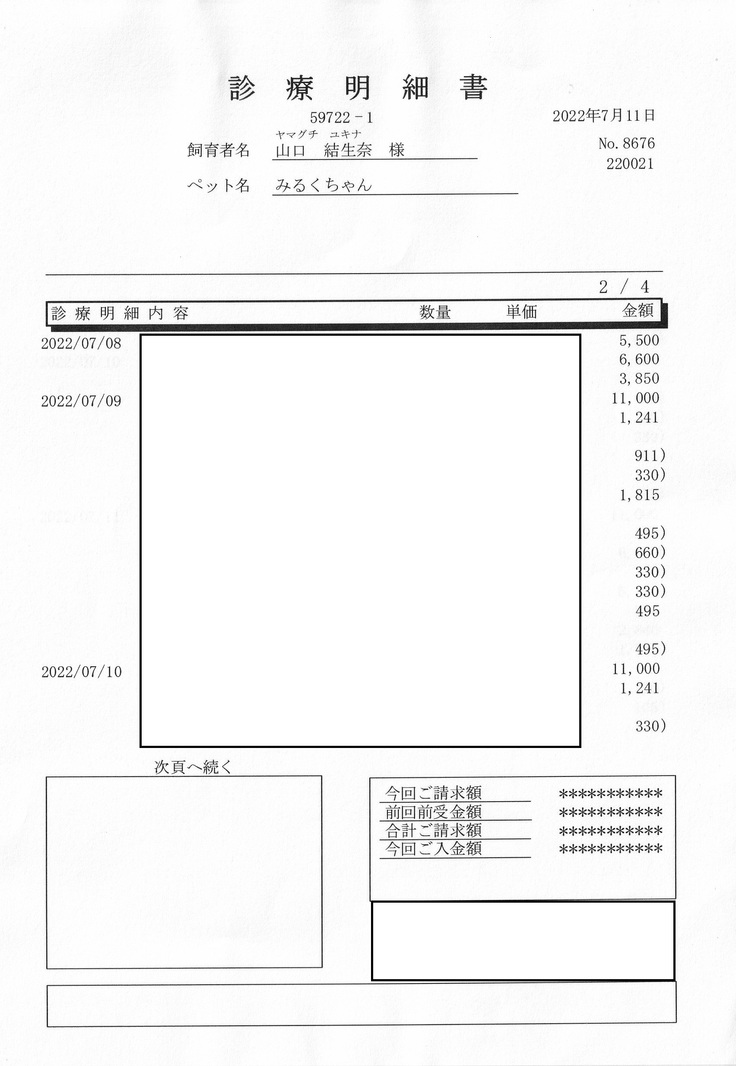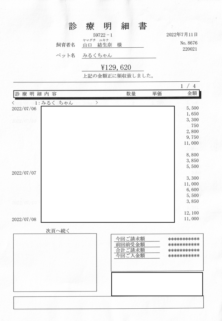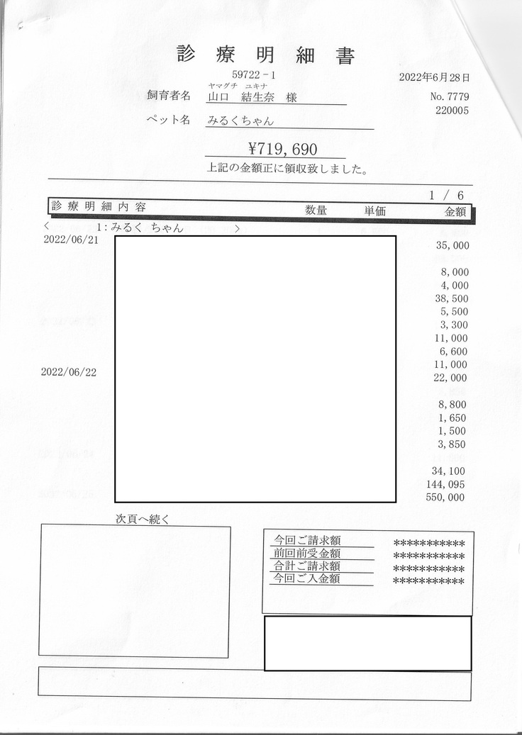 子犬の時から、ペット保険に加入しておりましたが、みるくはラブラドールということもありその分入院費・薬代も高額になります。