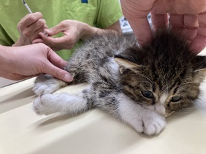 某所、自販機の陰に段ボール箱に入れて置かれていた2ヶ月くらいの子猫1匹