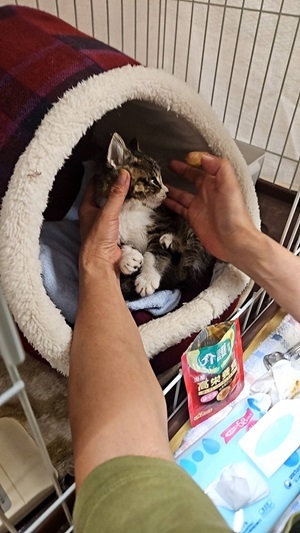 段ボール箱で捨てられていた仔猫 脳障害があってもがんばってます!