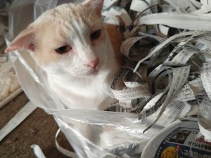 新聞紙ストックに紛れて遊んでるの、だーれ?