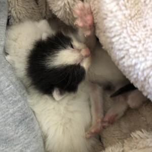 どれくらい長い時間、床下で鳴いていたのだろう。保護した時はすでにかなりの衰弱。シェルターに連れ帰り、小関が授乳し世話するもミルクの飲みも悪く、排泄も不順。そして1匹は力尽きて亡くなってしまった、残念ながら助けてあげることができなかった。