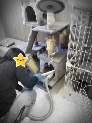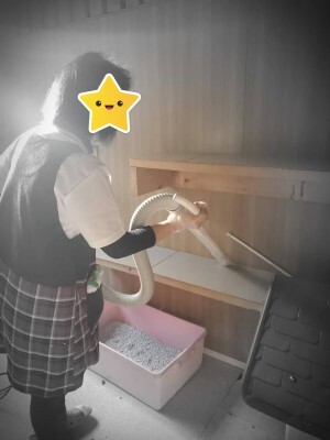 ↓↓↓ キャットハウスの隅々まで、掃除機でガー