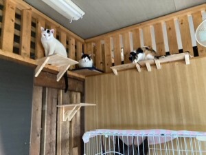 ラブでは、ボランティアさんの手作りキャットタワーも大活躍しています。