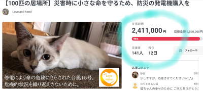 クラファンの成功は今後のシェルターの存続&猫ちゃんたちの希望でもあります。