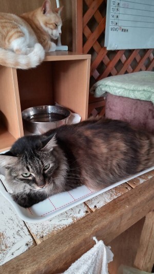 ↑↑↑ ここがひんやりして好きなの! 定位置