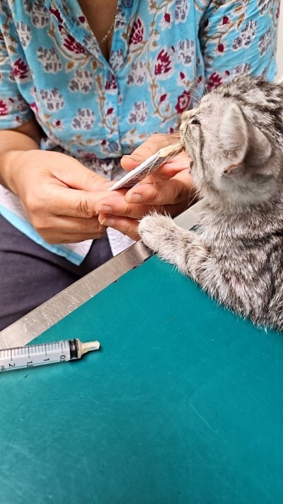 ↑↑↑ 新入りちゃん。2匹で保護されたお兄ちゃん。あごの下を怪我していて、熱も少しあるので