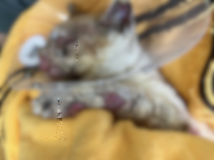 無事逃げた猫もいたのですが、逃げ遅れた猫2匹が重度の火傷を負ってしまい郡山市保健所から当団体へやってきました。
