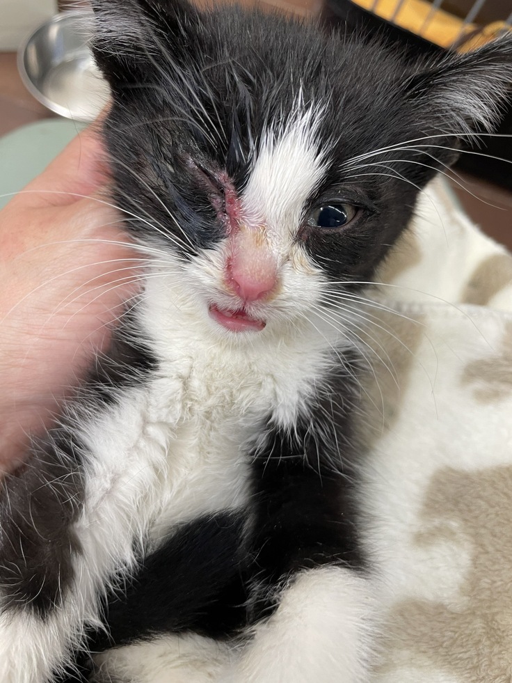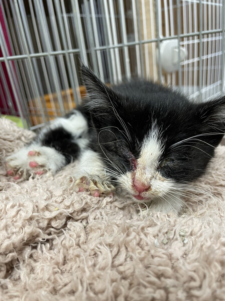 今は、猫風邪の治療はしているものの離乳食を沢山食べて元気に過ごしております😃