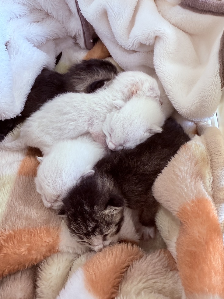 昨日、臍の緒がついている生後間もない乳飲み子が6匹やってきました。