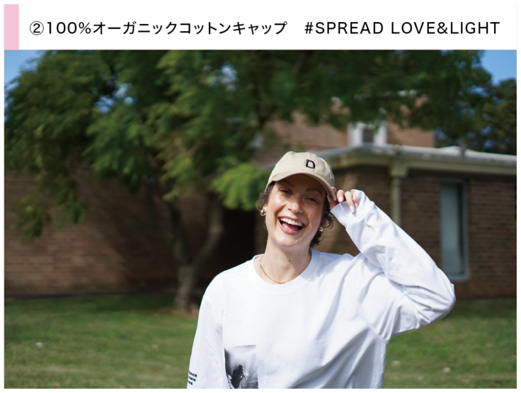 前面にはDANIのイニシャルDが刺繍で施され、背面の【SPREAD LOVE&LIGHT】は、愛と希望で満ち溢れた世界に。という意味が込められています。無条件の愛で、少しでも多くの方々を包み込んでいけると嬉しいです。