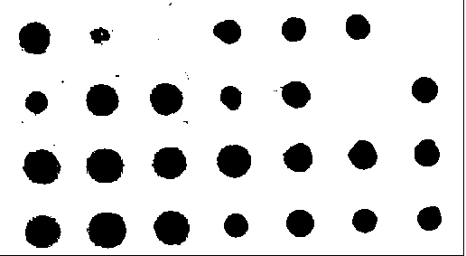 しかし困ったことに、原画像を見てみると、背景よりは黒いけれど薄い点がいくつかあります。それらも含めてうまく取り出すにはもう1工夫必要なようです。