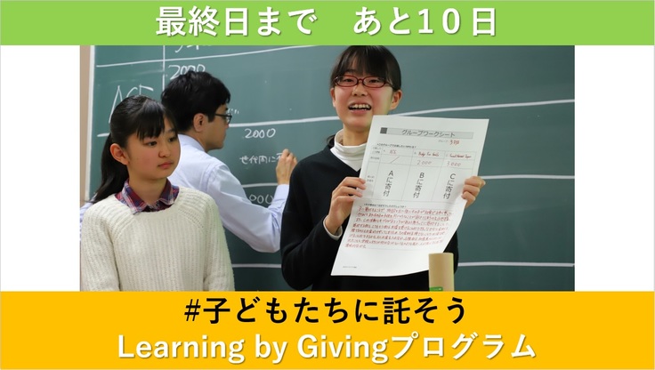6月1日からスタートした「寄付先を子どもたちが決める―Learning by Givingプログラム―」、最終日まで残すところあと10日となりました。