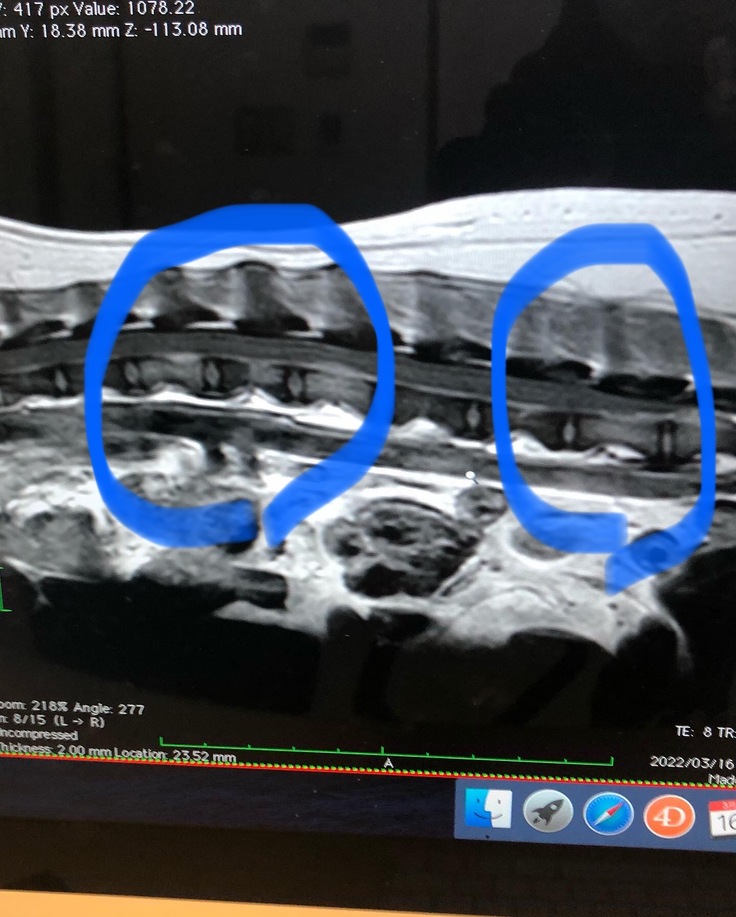 ラッキ-が、岐阜大学動物病院にて、検査、MRI、CT撮影、放射線治療を致します 放射線治療完了後、検査 痛みが止まらない場合は手術の可能性があります。