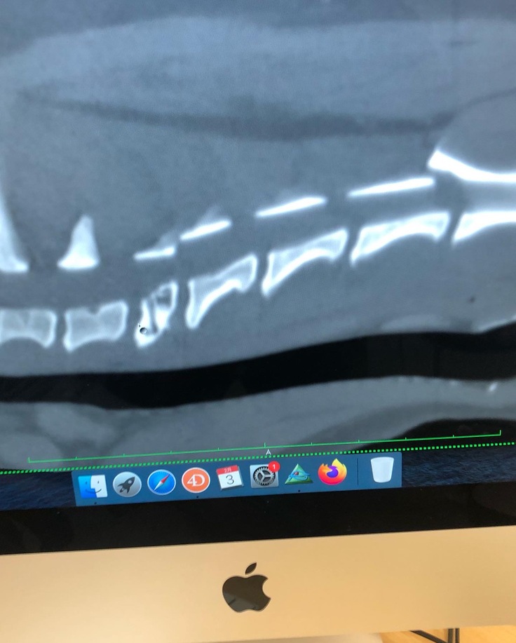 ※検査画像 下段の真ん中付近 穴の開いた骨が確認できます。