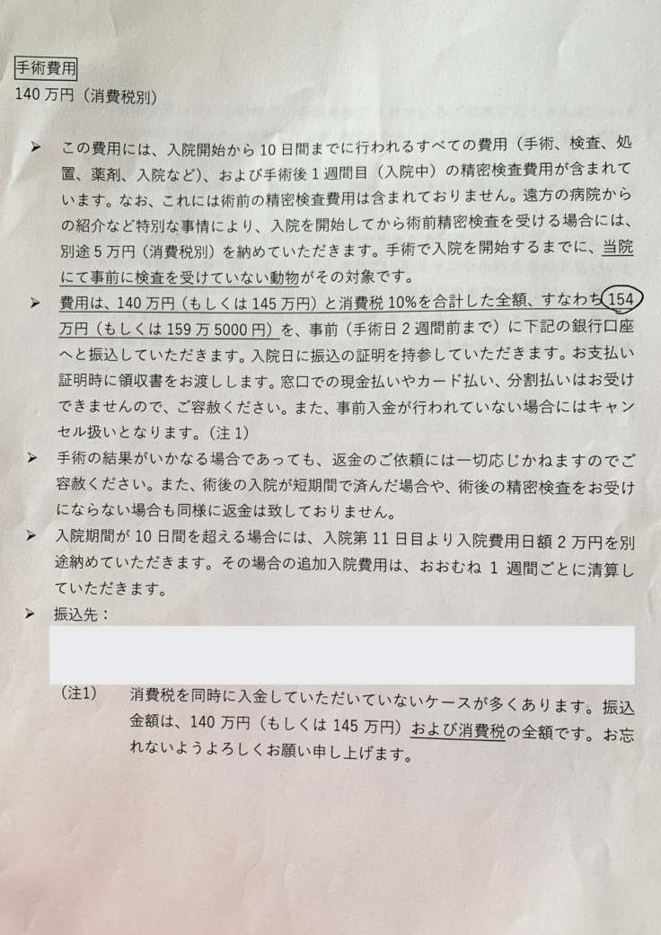 手術を受けさせた方が良いのはもちろん分かるし、度重なる奇跡のような復活を遂げてくれました。ただ保険は入っていたのですが、通院/入院に特化したものではなく、手術費150万のうち、15万のみ補償されるもので、実際問題として、出せない金額…という問題があります。