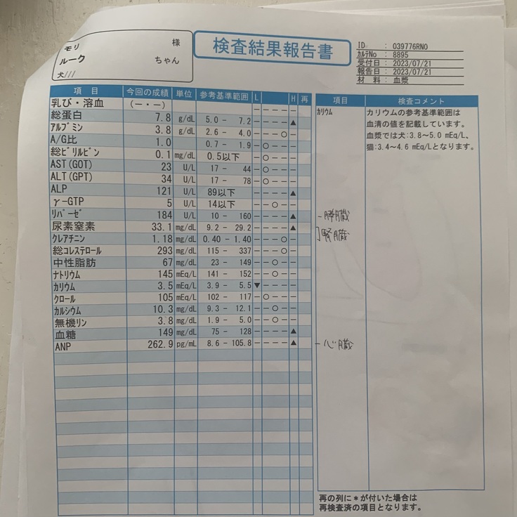 ルークの場合、8/1の手術はとりあえず無事に成功したようで、今後おおよそ10日間入院し、その間精密検査を受けたり、合併症の有無を判断していただき、特に問題がなければひとまず退院という流れとなります。