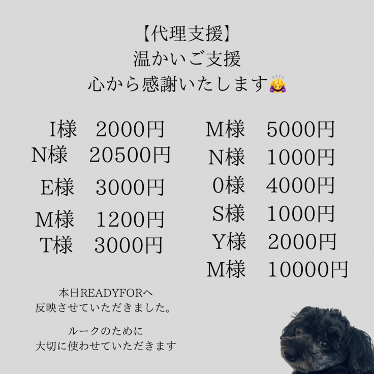先程代理支援分をこちらreadyforに反映しましたが、何故か金額が変わっていません。。