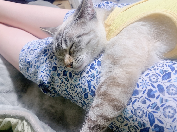 術後傷口が痛んだりしないか心配でしたが、多分大丈夫だと思わざる終えない寝方です♡