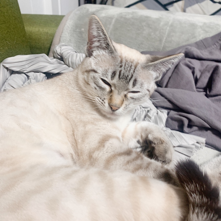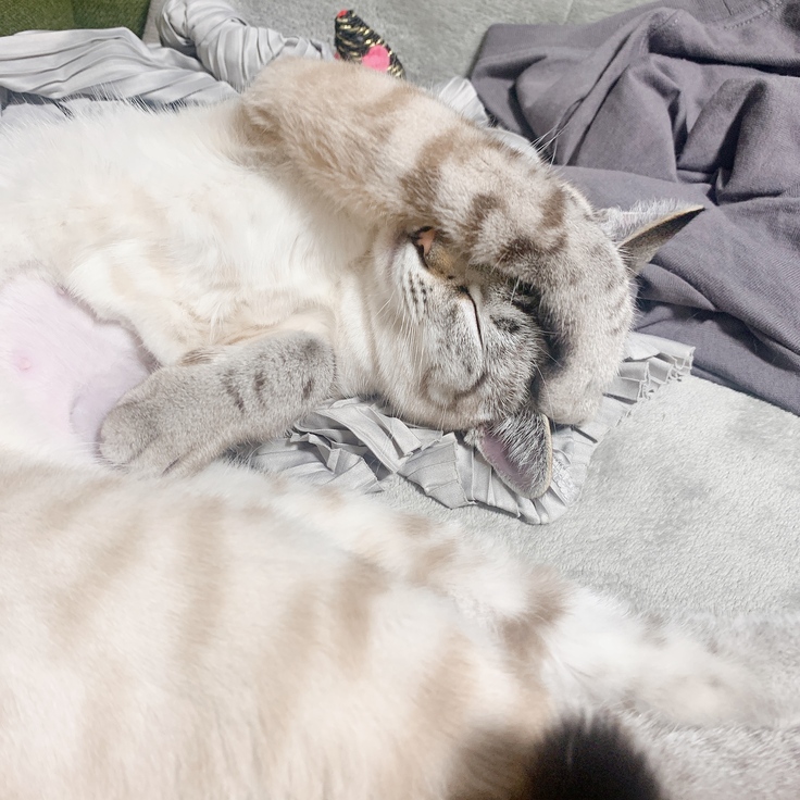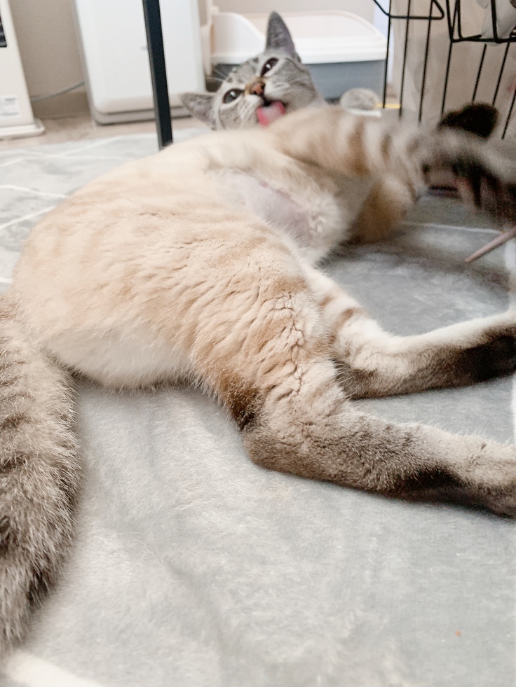 避妊手術でお腹の毛が剃られてるので、なんだかダイレクトに暖かさを感じほっこりしてます🐈😚