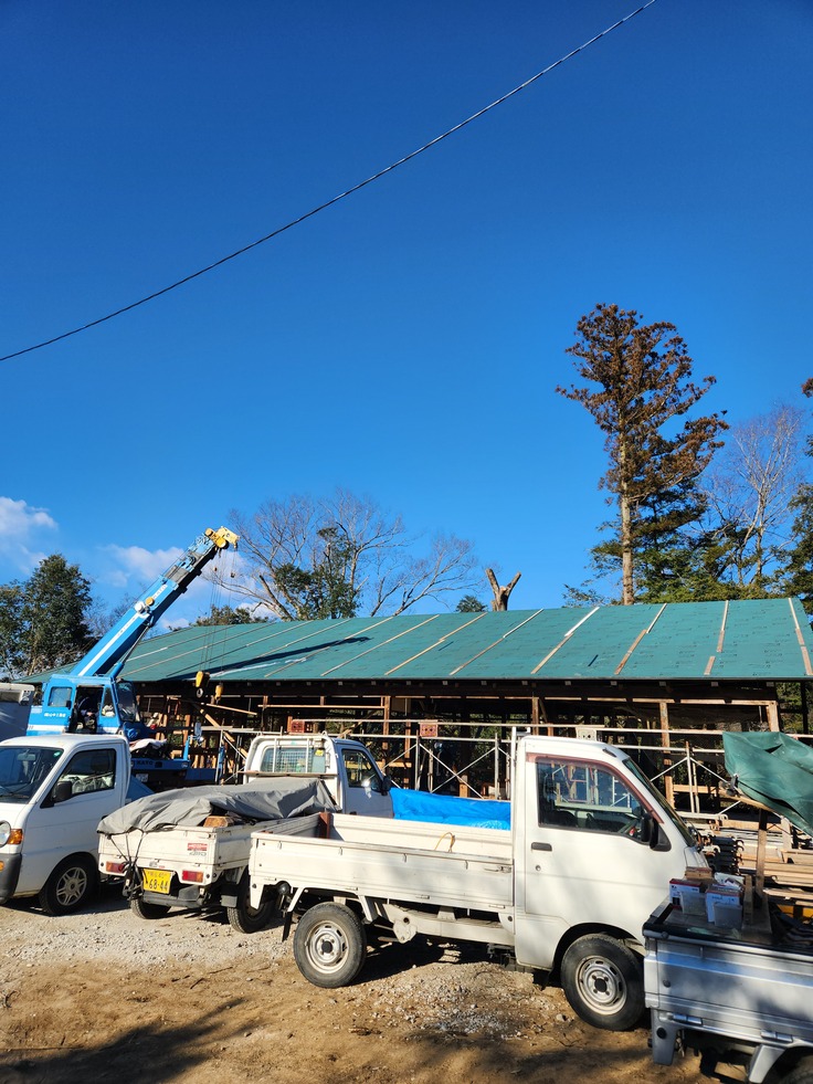 現在の様子です。2階建てだった古民家の1階部分を残し大屋根がつきました。