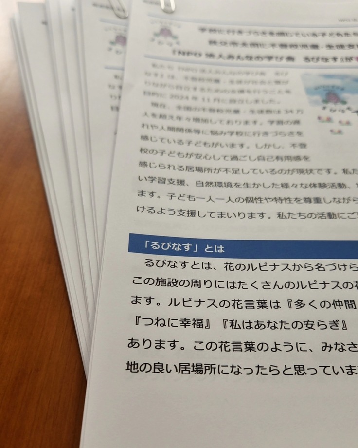 学習の遅れや人間関係等に悩み、学校に行きたいけど行けない、行きたくない子どもたちがいます。秩父地域においても増えている現状を皆様にも知っていただきたいと思います。
