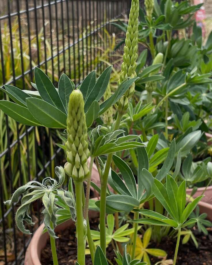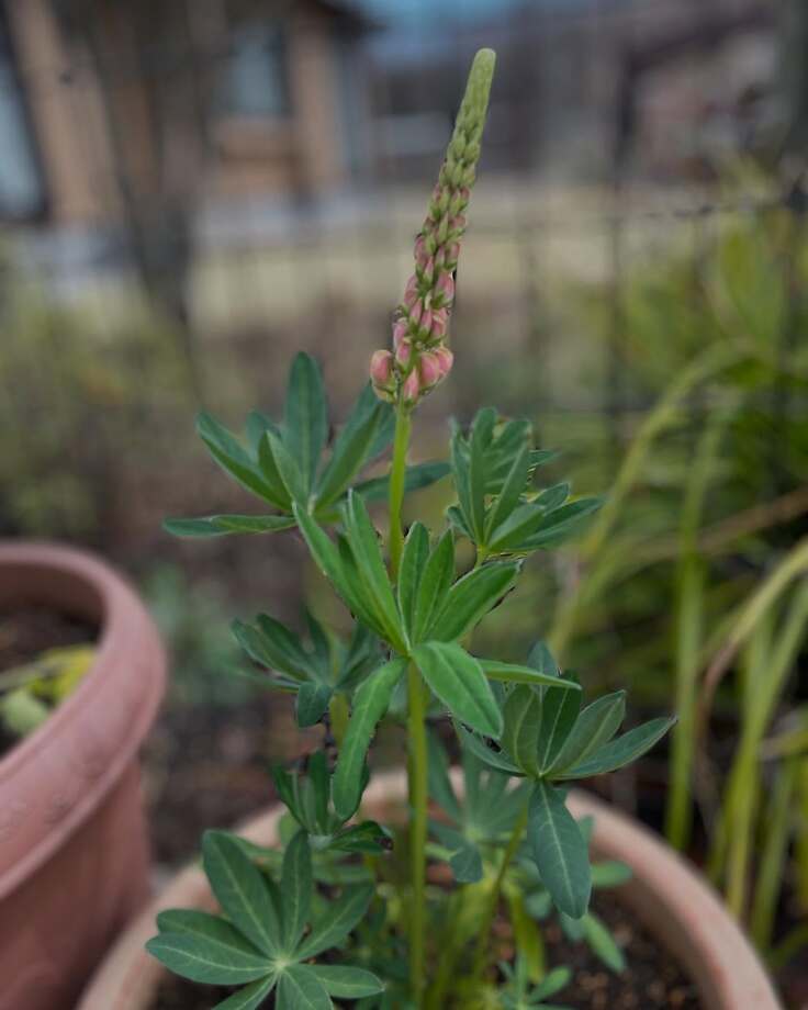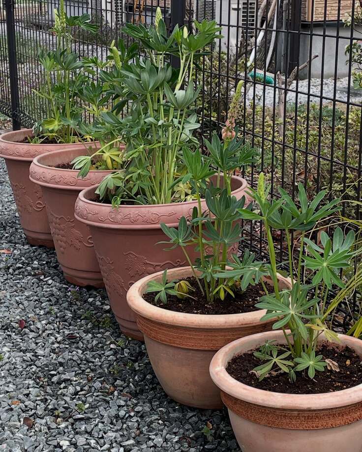 みんなの学び舎るぴなすのいわれであるルピナスの苗を大きな鉢に植え替えました。