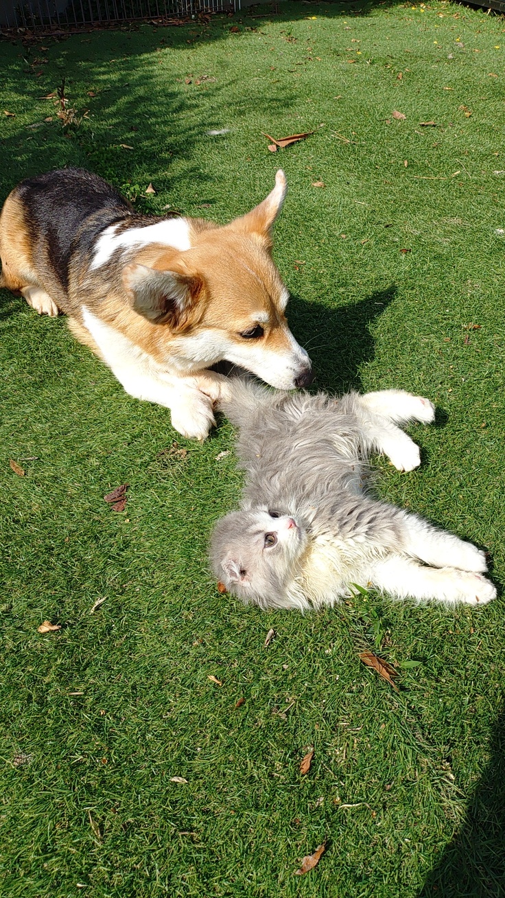 サイ君初お庭でコロンコロン転がりとても気持ちよさそうで、転がる度にイル、あられちゃん、ぷくぷくがサイ君に駆け寄り皆で見守っていました🥰