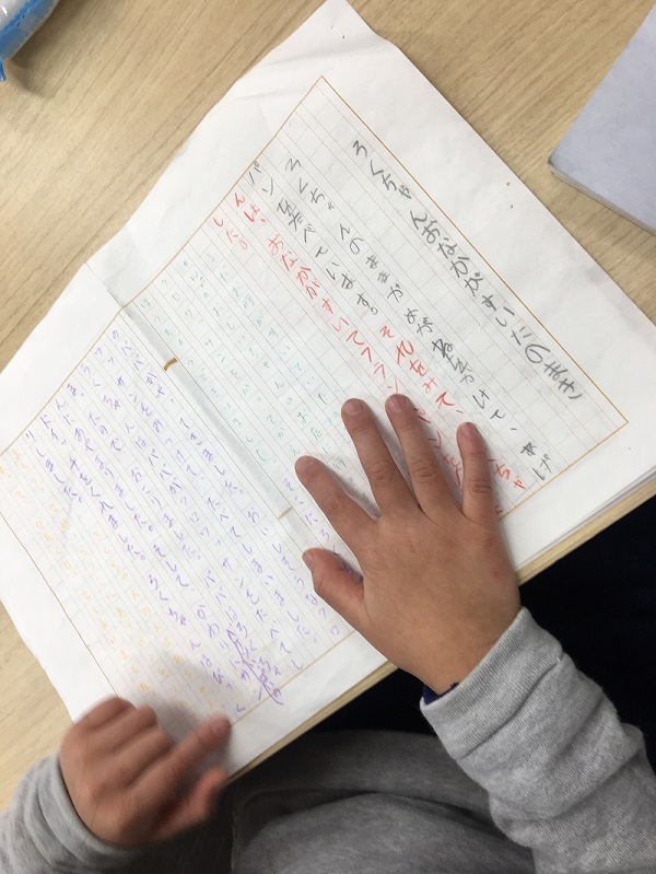 子ども達の作品が出来上がりましたら、オリジナルは作った本人のものとなりますが、コピーを2つ作り、一つは教室の本に付け、もう一つはご紹介してくださった方にお送りいたします。
