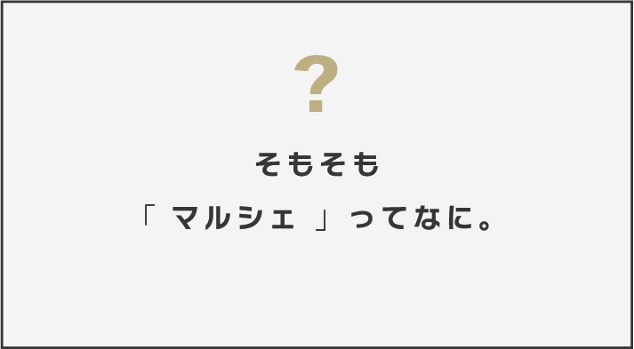最近、耳にする「マルシェ」という言葉。印象は人と物が集まったイベントという感じでしょうか。マルシェとはフランス語で「市場」を意味する言葉です。