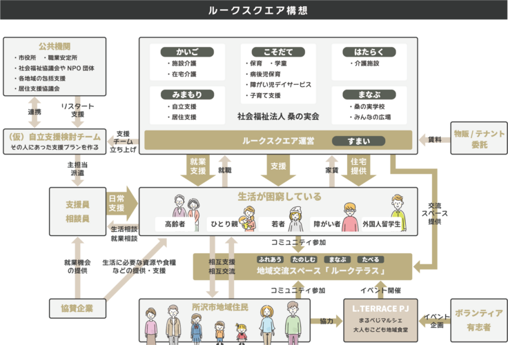 ルークスクエアに地域コミュニティの役割が加わることで、そこに住まう様々な事情を抱えた人たちが、リスタート(人生の再出発)のキッカケになればと考えています。