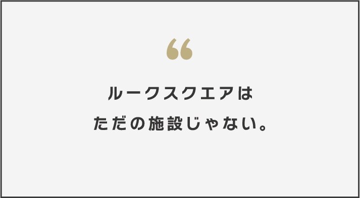 ルークスクエアは、人が集まり、にぎわいが生まれ、街に人の流れを生みだす場所。そして、様々な世代の人が、「輝ける」時間を過ごすことができる広場にしたいという想いからこの名前は生まれました。