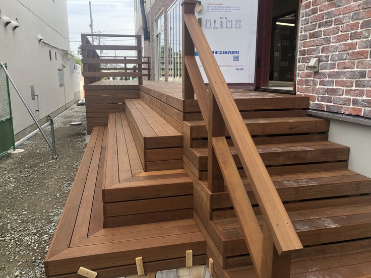 入居者と地域の方の関わりの場になるウッドデッキ