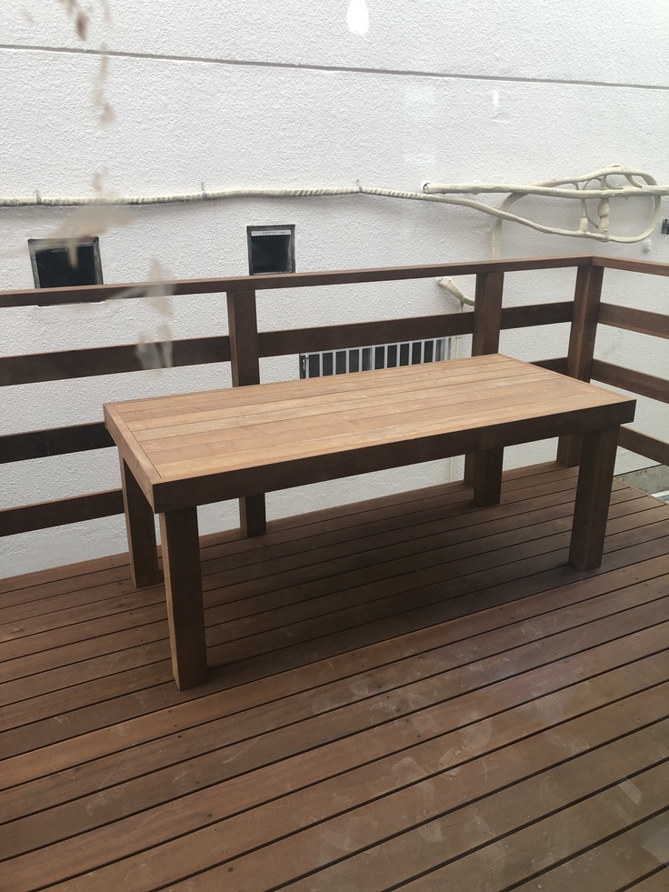大工さんがウッドデッキの余りを使って、外用のダイニングテーブルを作ってくれました。