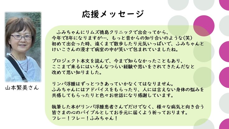繁美さんより、応援メッセージをいただきました!