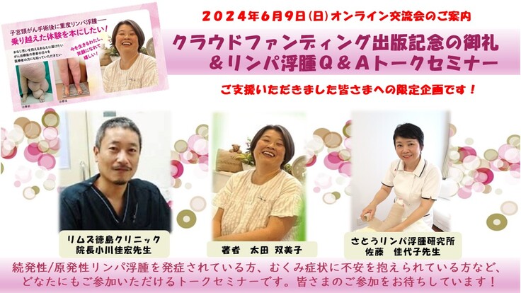 今なお、リンパ浮腫のために苦しんでいる方々のために、ご自分の経験を伝えることで、