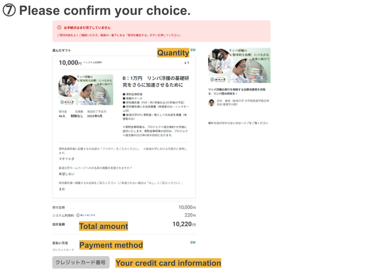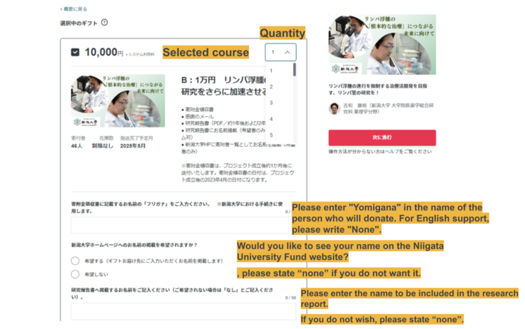 ● 新潟大学HPに寄附者一覧としてお名前を掲載(希望者のみ)