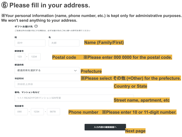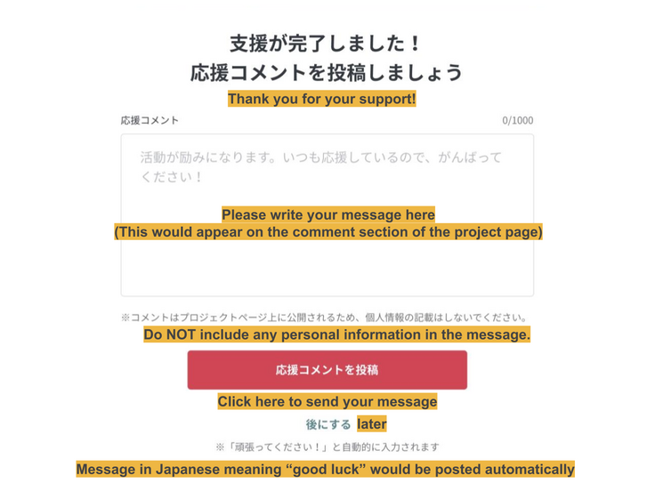 ※Please choose the3,000 yen,10,000 yen, 30,000 yen, 50,000 yen, 100,000 yen,300,000yen ,500,000 yen, or 1,000,000 yen course. Other courses are not available for supporters living overseas.
