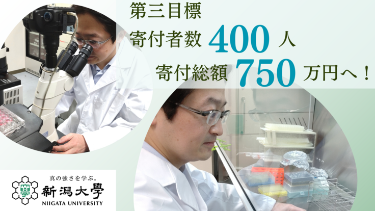 技術員の方はパートタイムで雇用され一年あたり130万程度で依頼するケースが多いため、研究期間の後半(技術員による研究補助の環境が整うと思われる時期)の一年間の人件費にファンディングの手数料を勘案して150万円を追加し、第三目標として寄付者数400名、寄付総額750万円を目指したいと考えています。