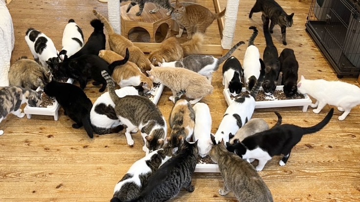 主に、シェルターで猫たちのごはんのお世話や猫部屋の掃除を担当しています。