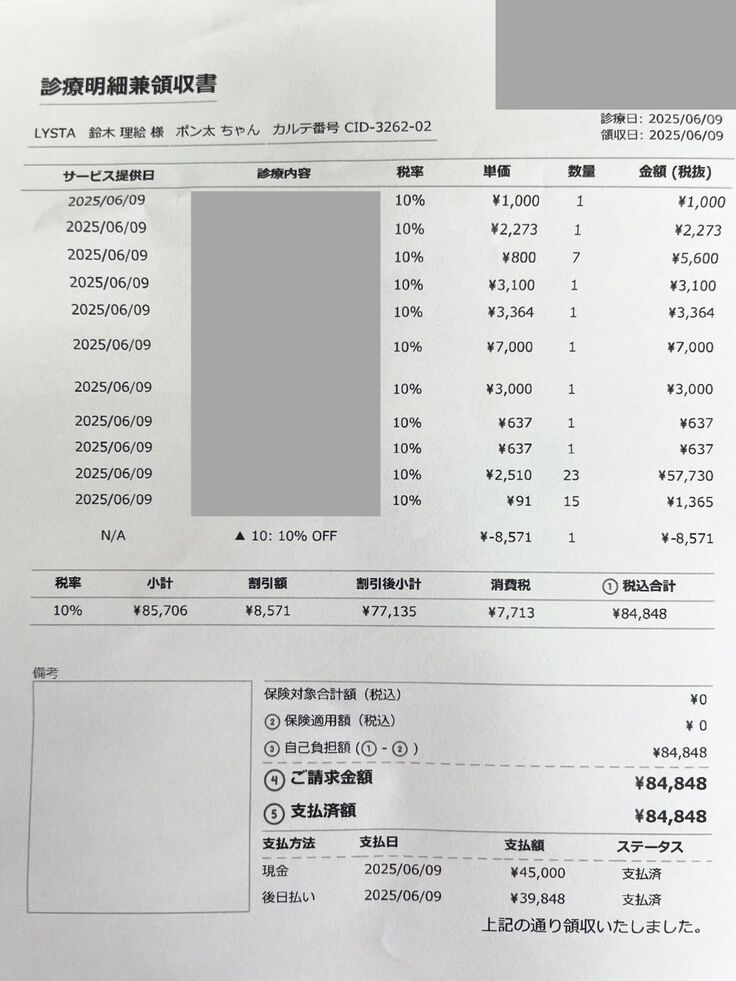 昨日の医療費は、それぞれお薬1か月分をだしていただいて、2匹合わせて約20万円でした。