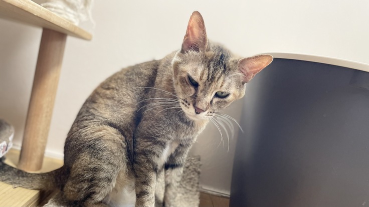 体調が不安で連れてきた子ですが、血液検査上の異常なく、お部屋にもスムーズに慣れてくれました。