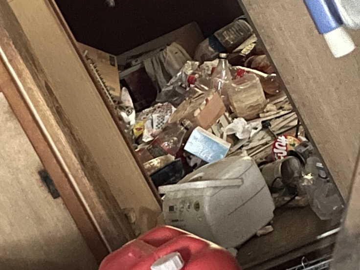 家主亡き後、その荒れた家の中を撮るのは気が引けましたが、捕まらない子の個体判別のためにカメラを向けたときの写真です。