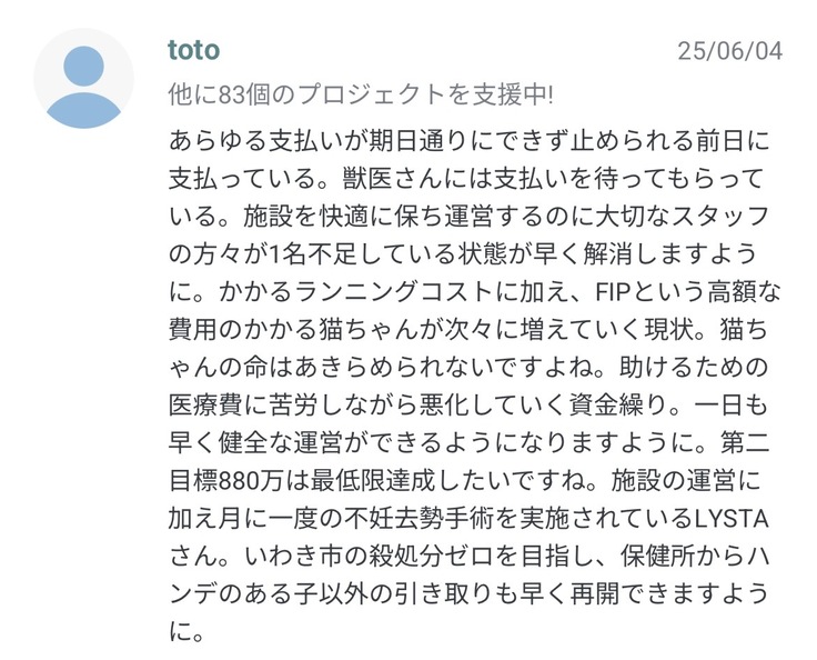 クラウドファンディングを熟読してくださり、支援してくださった方からの応援コメントを紹介します。