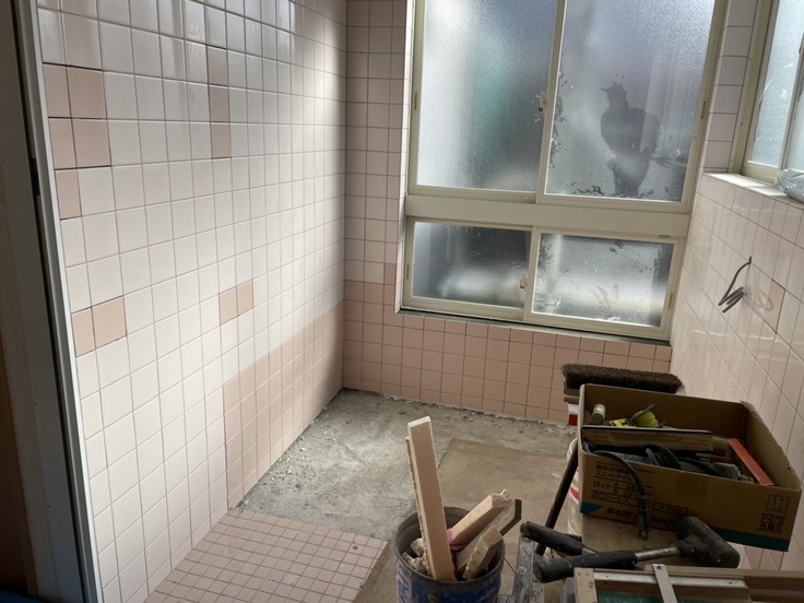 ▼こちらは元々浴槽が2つありましたが、浴槽をはずし、犬のシャンプートリミングができるスペースになる予定です。