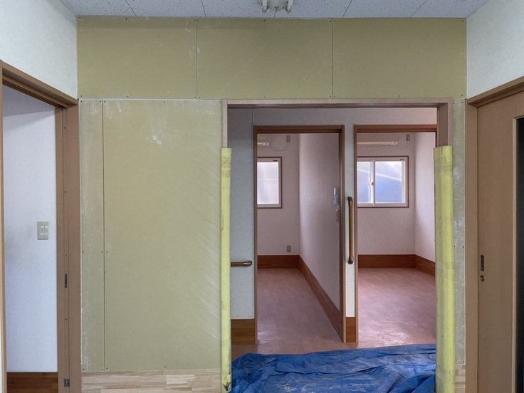 ▼手術の機能を移動するため、保護部屋と手術の空間を区切るための壁ができました。